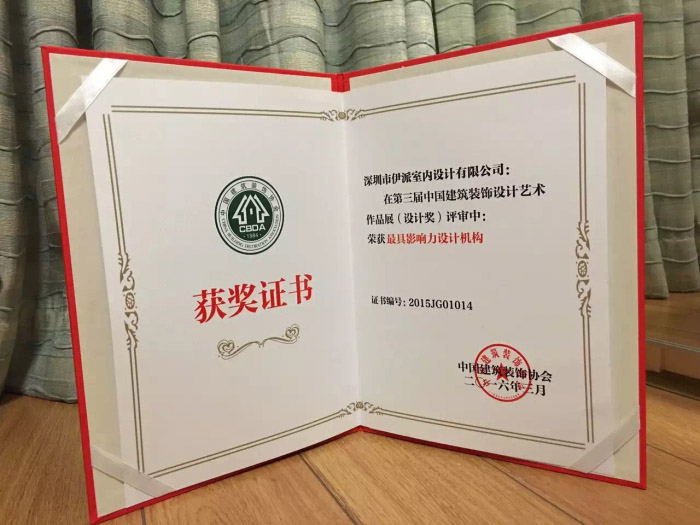 深圳市伊派室內(nèi)設(shè)計(jì)有限公司榮獲樣板房空間設(shè)計(jì)-“最具影響力設(shè)計(jì)機(jī)構(gòu)”