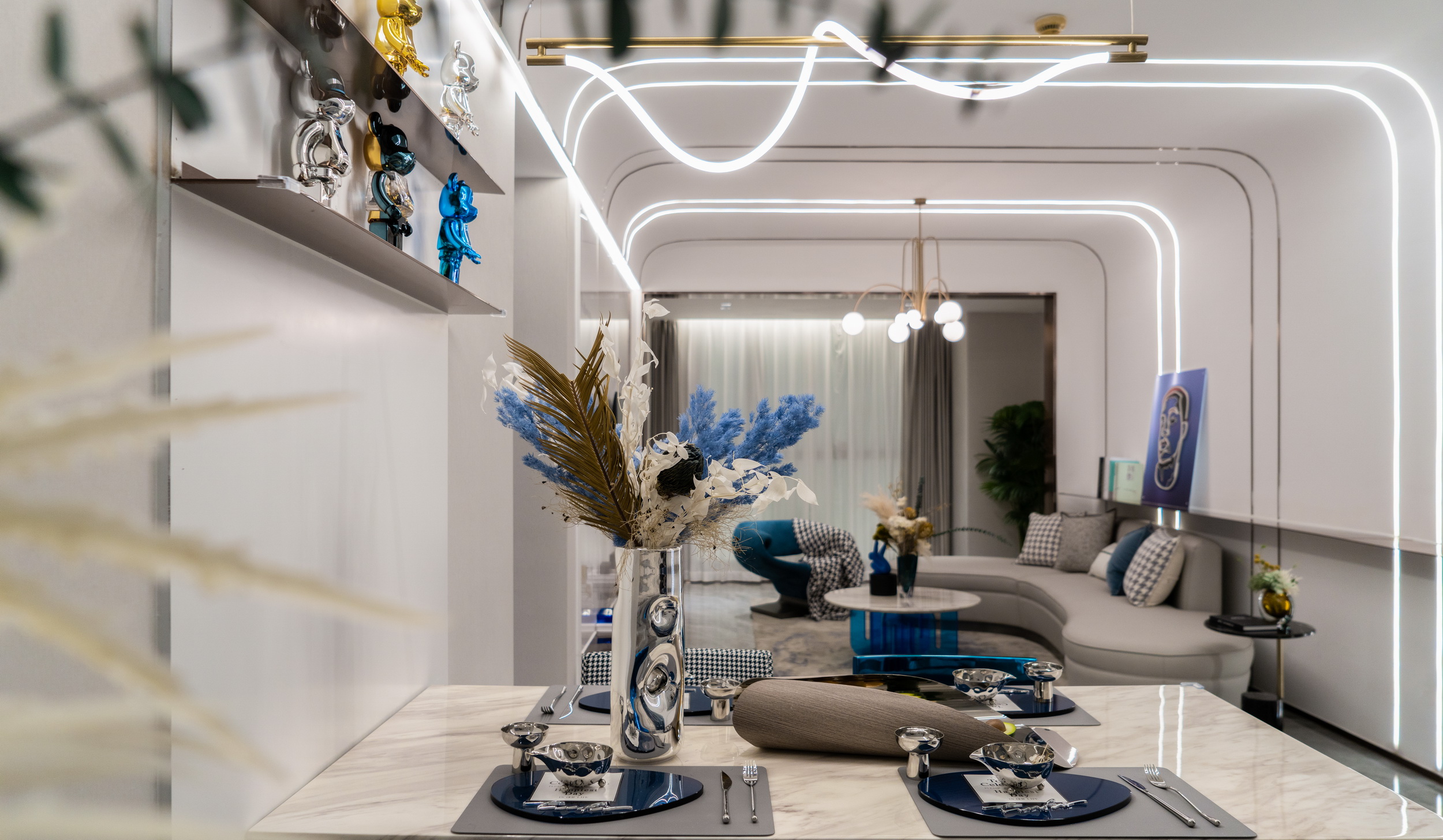社會(huì)的更新迭代促進(jìn)了藝術(shù)思維的進(jìn)化,同時(shí)推進(jìn)著生活方式的轉(zhuǎn)變。伊派設(shè)計(jì)以“時(shí)尚潮流”為主題,用實(shí)用主義美學(xué)的藝術(shù)語言,串聯(lián)業(yè)主最核心的居住需求,建立起物品、人與空間的感情,讓室內(nèi)的裝飾與家具,與居者產(chǎn)生心靈的共鳴。