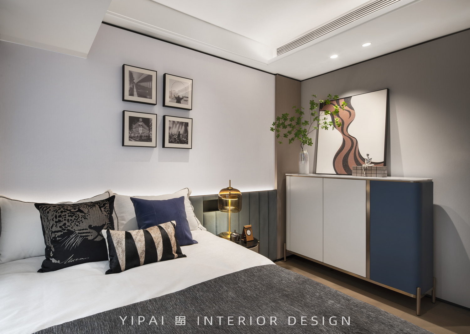 伊派設(shè)計(jì)采用現(xiàn)代風(fēng)格,將柏林灰藍(lán)色貫穿了各個(gè)生活空間,通過低重心設(shè)計(jì)處理手法,讓空間延展性更強(qiáng),藝術(shù)小品的點(diǎn)綴,空間被賦予了極高的藝術(shù)氣質(zhì)